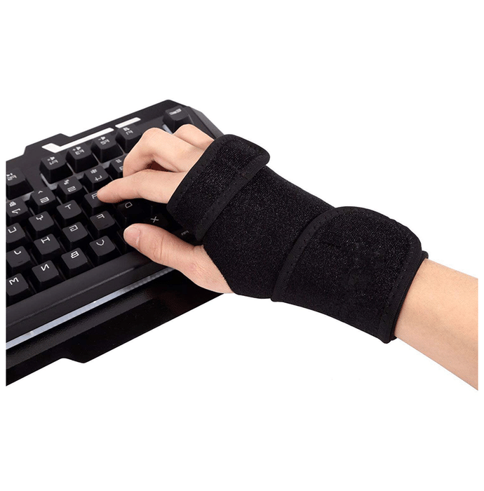 Skudgear Adjustable Wrist Support Brace with Removable Steel Plate it provides stable and strong support to the hand and wrist in various orthopaedic positions. It stabilises the wrist in a dorsi-flexion/functional position while allowing a full range of motion to the fingers and thumb. It compresses and retains body heat to relieve local pain and swelling. The product can be removed to allow for therapy sessions, washing and sanitising. | Uses: It helps provide stable and robust support to the hand and wrist | Product Specifications and Features: It is used for wrist sprains/strains, sports injuries, wrist tenosynovitis, ganglion cysts and other conditions that cause pain and discomfort in the wrist and require light support It provides stable and strong support to the hand and wrist in a variety of orthopaedic positions It stabilises the wrist in a dorsi-flexion/functional position while allowing full range of motion to the fingers and thumb It compresses and retains body heat to relieve local pain and swelling | Directions For Use: Use as directed on the label or as advised by a health care professional | Safety Information: Read the label carefully before use Store in a cool, dry place away from direct sunlight Keep out of reach of the children