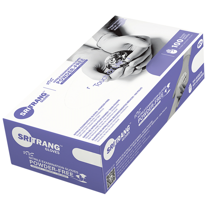 Sritrang Glove Powder-Free is used to help avoid cross-contamination between caregivers and patients during medical exams and procedures. It has a micro rough finish and is intended for one-time usage only. They are powder-free and hence can be worn for long hours. | Uses: It is mostly used by doctors, nurses and examiners to perform surgeries or conduct tests for hygienic purposes and self-protection. | Key Specifications and Features: | Non-Sterile: Non-sterile gloves are mainly used for hygienic purposes and self-protection | Ambidextrous: Able to use the right and left hands equally well | Versatile Use: This flagship of the powdered gloves is suitable for all kinds of industries, including full medical use as examination gloves in hospitals, laboratories, cosmetics, cleaning, food and kitchen while handling food like a professional | Finger Textured: Provides sustained, improved grip to the fingers for various procedures in both wet and dry environments | Comfort: The improved, reduced thickness allows operating with full tactile sensitivity while ensuring the highest possible level of comfort and protection. Also offers hygienic protection according to American standards, good elasticity and serves as a protective glove for minimal risks | Allergy-Free: Perfect for people with latex allergies, these non-latex powder-free hand gloves will not cause allergic reactions | Directions For Use: As directed by the physician. | Safety Information: For single use only Store in a cool and dry place Keep out of reach of children Read the label carefully before use