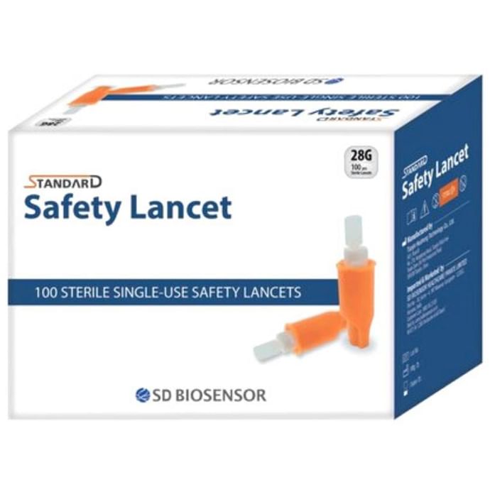 Standard Safety Lancet are sterile single-use safety lancets that make capillary blood sampling simple, safe and comfortable. These lancets have been sterilised with gamma radiation and have a protective cap sealed to the base to ensure patient safety. These standard lancets are designed for easy use and they can fit the most commonly used lancing device. | Uses: This aids in the monitoring of blood glucose and ketone levels. | Product Specification and Features: These lancets are single-use sterile lancets that should be disposed of after single use They may be used to pull capillary blood in an easy, safe and pleasant manner These lancets are gamma radiation sterilised lancets with a protective cap to ensure the safety of patients These standard lancets can fit the most common lancing devices | Directions For Use: Use as directed on the label. | Safety Information: Read the label carefully before use Store in a cool and dry place away from direct sunlight Keep out of reach of children