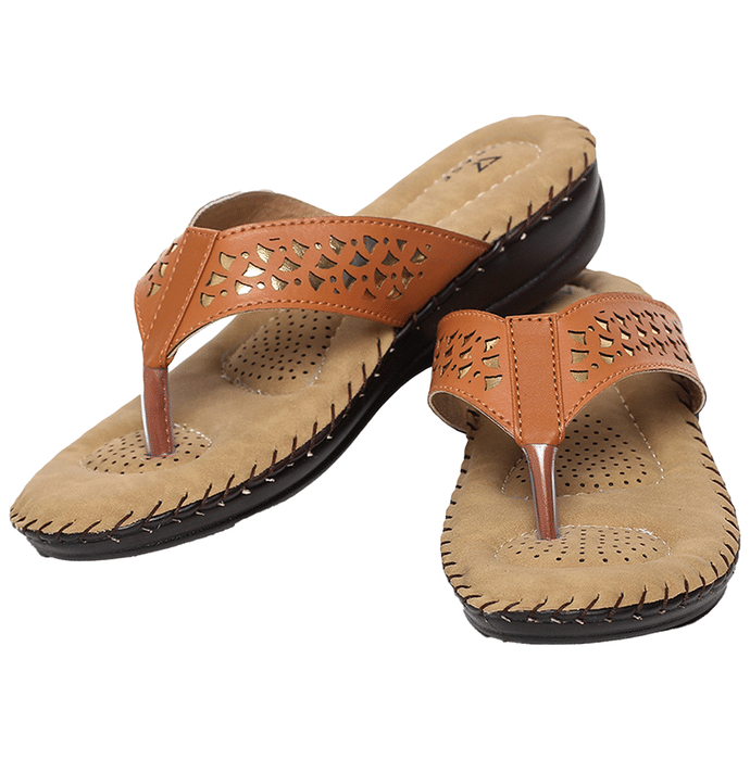 Trase Doctor Ortho Slippers for Women & Girls Light weight, Soft Footbed with Flip Flops 10 UK Tan & Gold