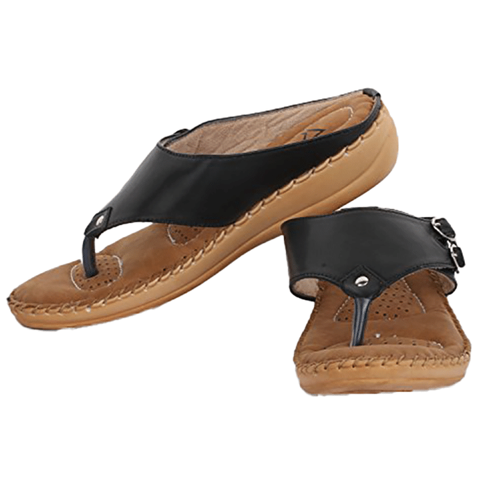 Trase Dr-Plus Ortho Slippers for Women with Comfortable Sole 8 IND/UK Black Trase Dr Slippers for Women with Comfortable Sole eases pain to give you the best walking experience. They may be helpful for overweight women or those have foot injuries.