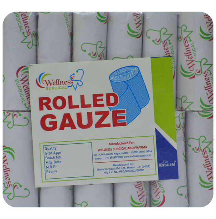 Wellness Surgical Bandage Roller The Wellness Surgical provide a wide assortment of gauze bandages, which are highly demanded in a medical environment. These roller bandages are also known as rolled gauze bandages. This gauze bandage is an absorbent gauze bandage. These bandages are manufactured with high-grade fabrics to ensure optimum quality. Due to our sound infrastructure, we can customize the products within the due time frame on the clients' requirements. The uses of bandages range from a simple dressing of superficial wounds to holding together fractured bones or body parts for rehabilitation and recovery. | Uses: It is used in hospitals, nursing homes, dispensaries, domestic households, first aid kits, cosmetic uses, and beauty care. | Product Specifications and Features: The bandage is disposable and skin-friendly It is uniformly knitted and has smooth textures The roller bandage is finely tested and is long-lasting | Directions For Use: As directed by health care practitioner. | Safety Information: Read the label carefully before use Keep out of reach of children Use under medical supervision For external use only for hygienic cleansing and disinfection of wounds with standard agents