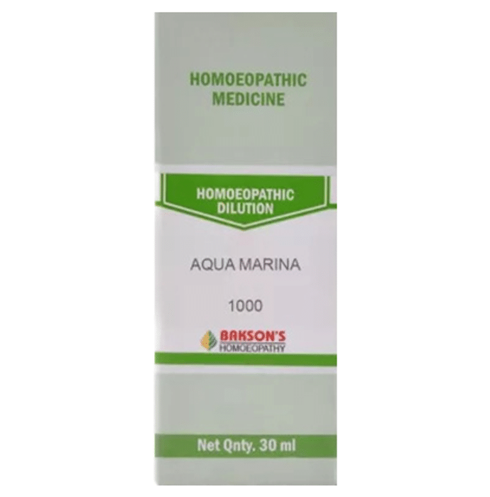 Bakson's Aqua Marina Dilution 1000 CH Bakson's Aqua Marina is a homoeopathic medication for general and clinical issues. It might also deal with vesicular rashes and vaginal paralysis.