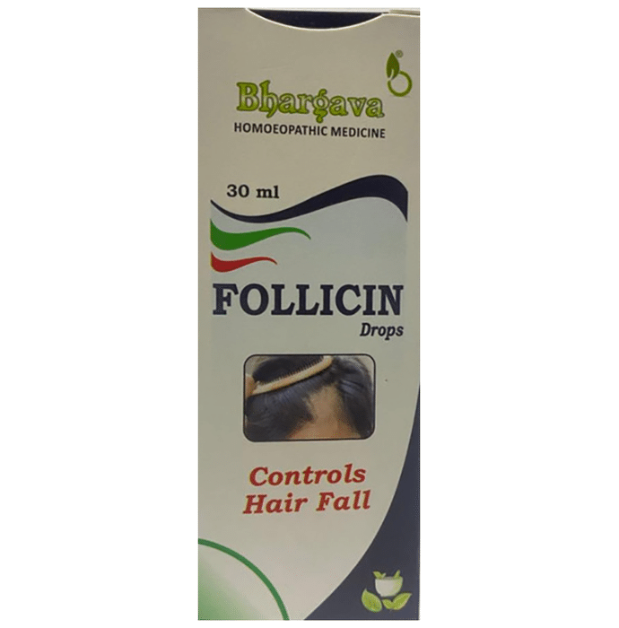 Bhargava Follicin Oral Drops Bhargava Follicin Oral Drops are useful for minimising hair loss caused by other medical disorders and managing scalp dryness. It contains Lycopodium clavatum, which helps treat male pattern baldness and prevents the hair loss on the sides of the scalp. Wiesbaden is also included, which helps to preserve hair health while also preventing hair fall and thinning.