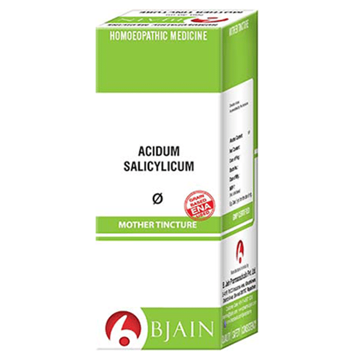 Bjain ACIDUM SALICYLICUM Mother Tincture Q Bjain ACIDUM SALICYLICUM Mother Tincture is a homoeopathic medicine which is useful in treating multiple joint pains. It helps in treating dyspepsia, and Meniere’s disease and also reduces painful swelling in the throat. Digestive disorders and weakness can also be relieved by its use.