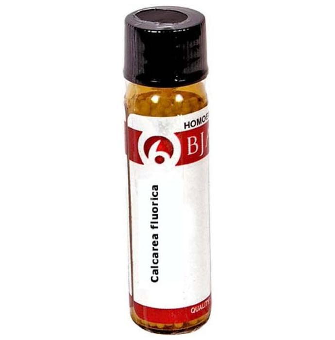 Bjain Calcarea Fluorica Globules 6X Bjain Calcarea Fluorica Globules is a well-known homoeopathic remedy for hard, stony glands, varicose veins and enlarged veins. It is also an effective medicine for depression, hard excrescences on the scalp, conjunctivitis and cysts.