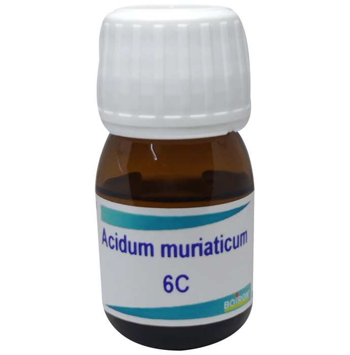 Boiron Acidum Muracitum Dilution 6C is a homoeopathic remedy that can deal with conditions like diarrhoea, haemorrhoids, mouth and tongue affections, and typhoid. | Key Ingredients: Acidum muraticum | Key Benefits: It may aid in managing haemorrhoids This remedy can help in managing diarrhoea while urinating, with involuntary stool It can assist in managing the mouth studded with ulcers, which are deep and perforating, having a black or dark base with offensive breath This homoeopathic medicine can help in managing mouth and tongue infections | Directions For Use: As directed by the physician | Safety Information: Read the label carefully before use Do not exceed the recommended dosage Keep out of the reach of children Use under medical supervision Store in a cool, dry place away from direct sunlight and heat