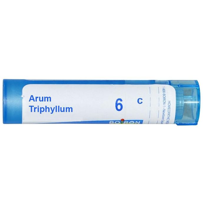 Boiron Arum Triphyllum Multi Dose Approx 80 Pellets 6 CH Boiron Arum Triphyllum Multi Dose Approx 80 Pellets is a homoeopathic remedy that is prepared from the plant Triphyllum. It is a remedy that provides relief from all kind of acridity (pungent and sharp smell) that is the result of any ailment. It is also recommended for providing relief from a headache, sore nose, obstructed nose when one has to breathe through the mouth, bleeding nose along with mucus, chapped and burning lips, dirty smelling saliva, swollen glands, and red skin with rashes.