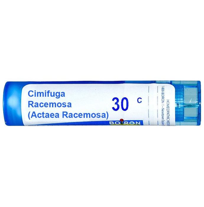 Boiron Cimicifuga Racemosa Pellets 30 CH Boiron Cimicifuga Racemosa (Actaea Racemosa) Multi-Dose Approx 80 Pellets is a multipurpose homoeopathic remedy that treats several health conditions. It has a marked effect on the cerebrospinal, muscular system, uterus and ovaries. Indicated in pains associated with rheumatism, uterine cramps and migraine. In females, it helps in treating menstrual disorders accompanied by severe pain in the ovarian region. It is also useful in relieving soreness of the muscles and limbs and helps in reducing involuntary jerking.
