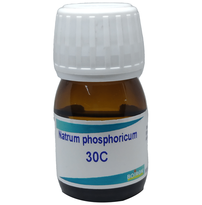 Boiron Dilution Natrum Phosphoricum 30C Boiron Natrum Phosphoricum Dilution 6C or phosphate of sodium dilution may help manage lactic acid. It may help in managing acidity. It can support dyspepsia, dull feeling, head dizziness, and heartburn.