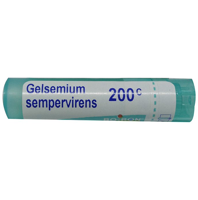 Boiron Gelsemium Sempervirens Pellets 200C Boiron Gelsemium Sempervirens Multi Dose Approx 80 Pellets is a homeopathic medicine that acts upon the nervous system that helps in the lack of coordination of various muscles in and around the eyes, throat, chest, larynx, sphincter, extremities, etc. They are universally recognized as yellow jasmine. This medicine is a deep acting remedy for patients suffering from anxiety related syndromes and lonesome problems. Gelsemium Sempervirens are recommended for patients having headaches with double vision or vertigo problems.