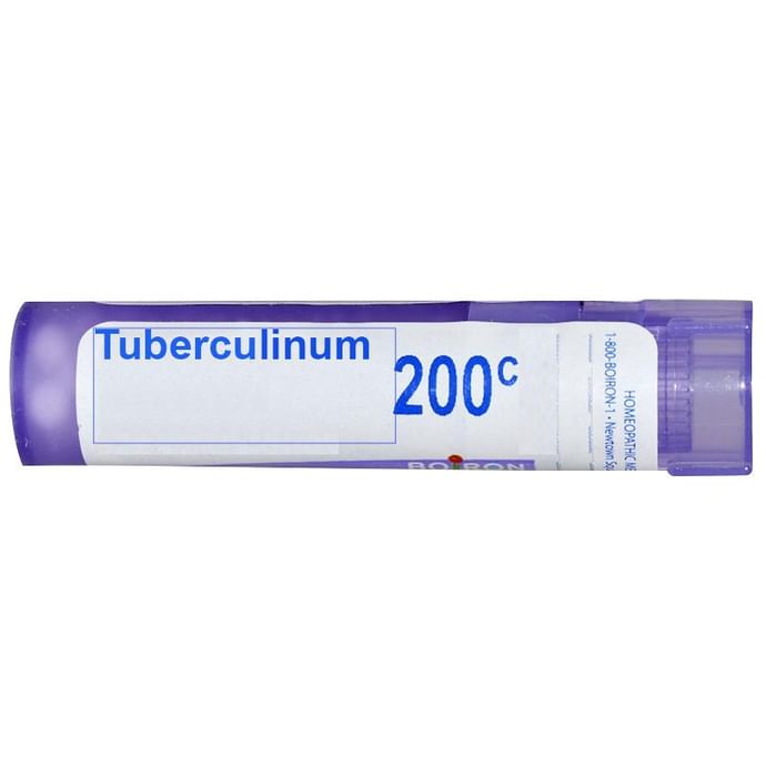 Boiron Tuberculinum Pellets 200C Boiron Tuberculinum Multi Dose Approx 80 Pellets is a homoeopathic medicine that is prepared from the bacteria that infects cattle. The use of genuine raw materials in its formulation makes it free from impurities. It helps in treating skin inflammations and tuberculosis. Psychological issues like depression, irritation, melancholy and sleeplessness can also be improved with its use.