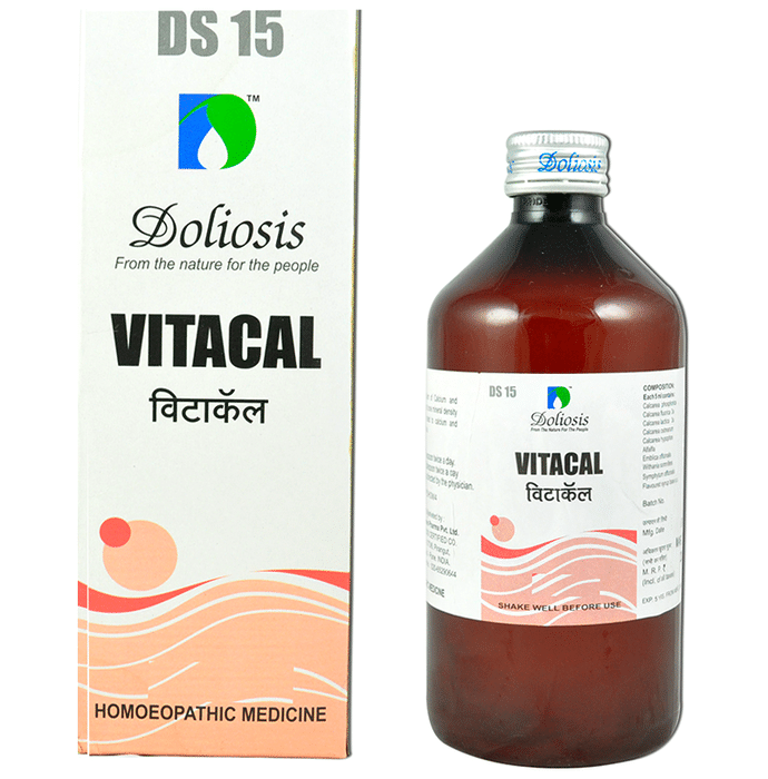 Doliosis DS15 Vitacal Syrup DS15 Vitacal Syrup is helpful in spinal weakness, bone fracture, rickets, dental caries, pregnancy, Hemorrhages, painful dentition, skin diseases.