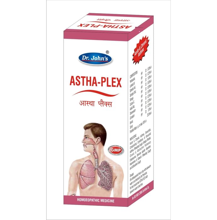 Dr. Johns Astha-Plex Tonic Dr. Johns Astha-Plex Tonic builds up strong immunity against allergy, thus giving relief from Bronchitis, Wheezing, Eosinophilia attacks, Sinusitis and Rhinitis. It is used to clear any obstruction in the air way.