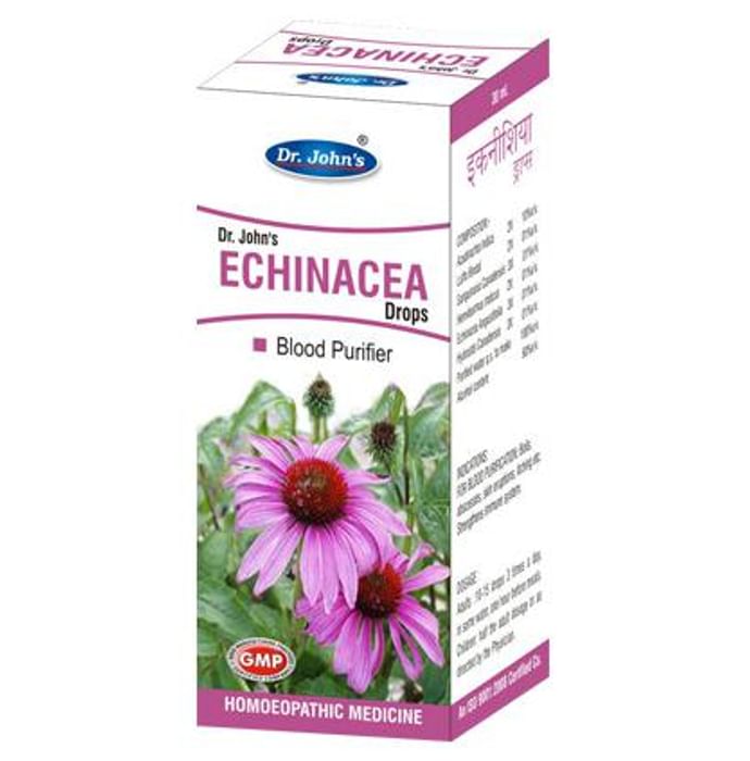 Dr. Johns Echinacea Drop Dr. Johns Echinacea Drop is used for blood purification, boils, abscesses, skin eruptions, itching, etc. It strengthens the immune system and is helpful in the case of infections of urinary tract, ear, and throat.