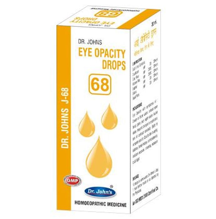 Dr. Johns J-68 Eye Opacity Drop Dxr. Johns J-68 Eye Opacity Drop helps to soothe the irritation and burning in dry eyes by maintaining proper lubrication. It relieves the burning, irritating and gritty dry eyes. It is suitable for contact lens wearers and moisturises and soothes eyes for a prolonged period.