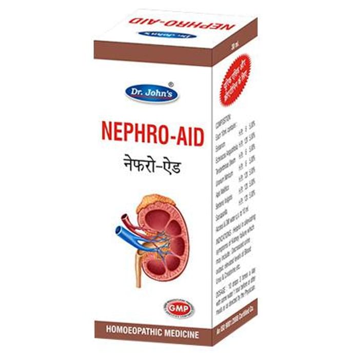 Dr. Johns Nephro-Aid Drop Dr. Johns Nephro-Aid Drop is specifically designed for patients with the kidney disease. It helps to keep your kidneys and bladder in healthy condition. The herbal formula assists in the everyday function of the kidneys and bladder, helping to flush our toxins and cleanse your system.
