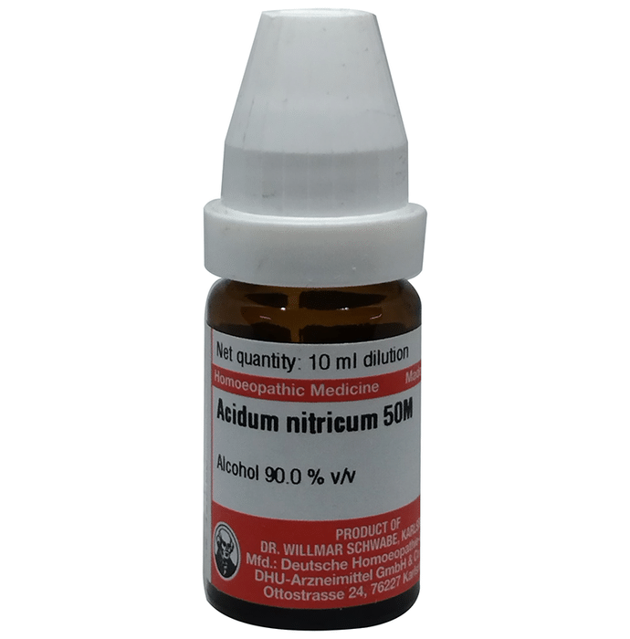 Dr Willmar Schwabe Germany Acidum Nitricum Dilution 50M Dr Willmar Schwabe Germany Acidum Nitricum It's a homoeopathic medicine with a wide range of applications. It treats piles and fissures, repairs mouth ulcers, fills in skin gaps, and lowers swollen glands, as well as the diseases that go along with them.