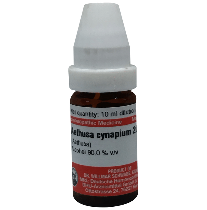 Dr Willmar Schwabe Germany Aethusa Cynapium Dilution 200 Dr Willmar Schwabe Germany Aethusa Cynapium Dilution alleviates violent convulsions and excessive heat. It reduces headaches caused by mental strain and guards against violent vomiting. It relieves cramping, distention, and diarrhoea.