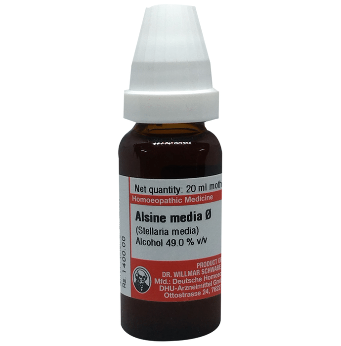 Dr Willmar Schwabe Germany Alsine Media (Stellaria Media) Mother Tincture Q Dr Willmar Schwabe Germany Alsine Media (Stellaria Media) Mother Tincture Q aids in the reduction of congestion and sluggishness in all bodily functions. It relieves severe, shifting, and rheumatic pains throughout the body, as well as chronic rheumatism, shifting pains, and swollen and inflamed gouty finger joints.