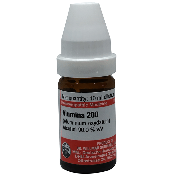 Dr Willmar Schwabe Germany Alumina Dilution 200 Dr Willmar Schwabe Germany Alumina It is a homoeopathic remedy used to treat a variety of health problems. It's mostly used to treat constipation and related problems like indigestion. It has qualities that make it effective in the treatment of cough and its complications. It aids in the reduction of fatigue and sluggishness