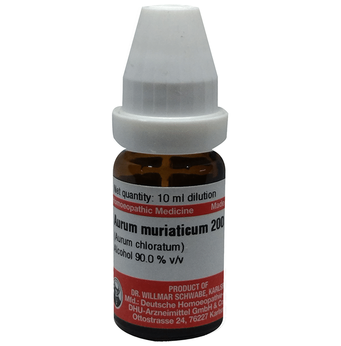 Dr Willmar Schwabe Germany Aurum Muriaticum Dilution 200 Dr Willmar Schwabe Germany Aurum Muriaticum Dilution enhances blood flow throughout the body and aids in the treatment of heart-related issues. It relieves pain in the ear, nose, and throat and the burning sensation in the stomach