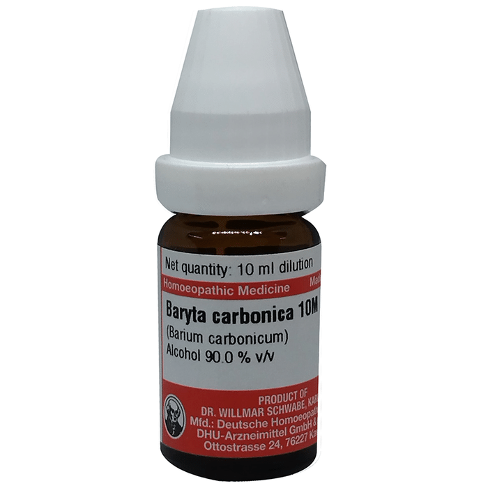 Dr Willmar Schwabe Germany Baryta Carbonica It is used in multiple sclerosis of the brain and spinal cord and is indicated for elderly persons who suffer from paralysis. Senile dementia is an illness characterised by a decline in mental ability that is commonly connected with ageing. The two most common causes of this decline are stroke and Alzheimer's disease. | Key Ingredients: Baryta carbonica | Key Benefits: Helps to reduce the enlargement of glands in the neck, or under the jaw and behind the ear Helps indigestion, hiccoughs, and eructation, which relieves pressure as of a stone It reduces the swelling up of the mucous lining with trouble in swallowing and inflammation of tonsils Helps to reduce the enlargement of glands in the neck, or under the jaw and behind the ear | Directions For Use: Use as directed on the label or as advised by your healthcare provider | Safety Information: Read the label carefully before use Store in a cool and dry place away from direct sunlight Keep out of reach of children