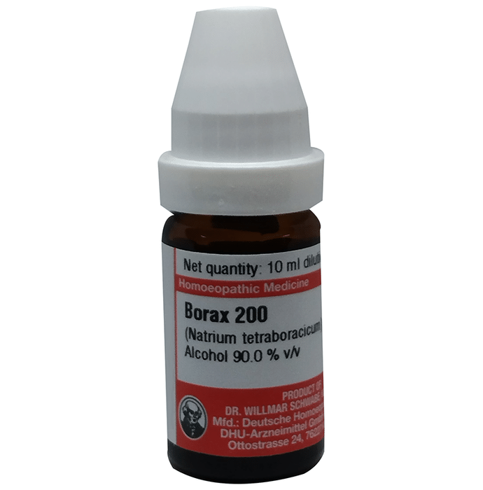 Dr Willmar Schwabe Germany Borax Dilution 200 Dr Willmar Schwabe Germany Borax It is a homoeopathic remedy that is also referred to as sodium borate. This medication is used to treat a variety of stomach and intestinal problems. It is a good drug for treating intestinal irritation and urinary bladder spasms. This drug can also be used to treat eczematous outbreaks on the toes and fingers, as well as itching.