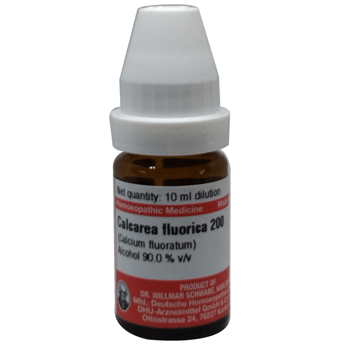 Dr Willmar Schwabe Germany Calcarea Fluorica It is a useful homoeopathic medicine for the treatment of varicose veins, piles and the correction of hazy eyesight. It's a full health tonic that can also help with bleeding gums, rheumatic aches and skin diseases including psoriasis and dry skin. This drug can also help with loss of voice and throat irritation. | Key Ingredients: Calcarea fluorica | Key Benefits: It is extremely helpful in the treatment of valvular diseases and prevents the attack of toxins on the heart and blood vessels It helps to relieve conditions such as severely dry skin that causes itchiness Helpful in the reduction of dental cavities and bleeding gums It is also helpful in reducing the inflammation of thyroid glands | Directions For Use: Use as directed on the label or as advised by your healthcare provider | Safety Information: Read the label carefully before use Store in a cool and dry place away from direct sunlight Keep out of reach of children
