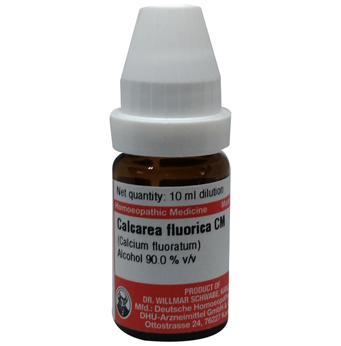 Dr Willmar Schwabe Germany Calcarea Fluorica (Calcium Fluoratum) Dilution CM Dr Willmar Schwabe Germany Calcarea Fluorica It is a useful homoeopathic medicine for the treatment of varicose veins, piles and the correction of hazy eyesight. It's a full health tonic that can also help with bleeding gums, rheumatic aches and skin diseases including psoriasis and dry skin. This drug can also help with loss of voice and throat irritation.