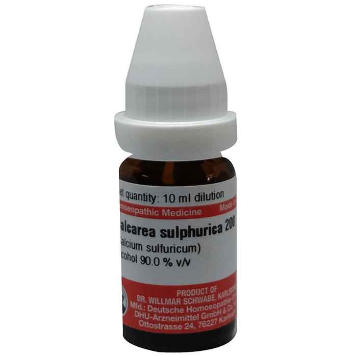 Dr Willmar Schwabe Germany Calcarea Sulphurica Dilution 200 Dr Willmar Schwabe Germany Calcarea Sulphurica is an effective remedy for the treatment of skin conditions such as eczema, lupus and acne. It's also effective for treating tumours and enlarged glands. It can also be used to treat a variety of different health issues, including minor cuts and wounds. This medicine can also be used to treat respiratory problems such as a runny cough and a buildup of fluid in the lungs.