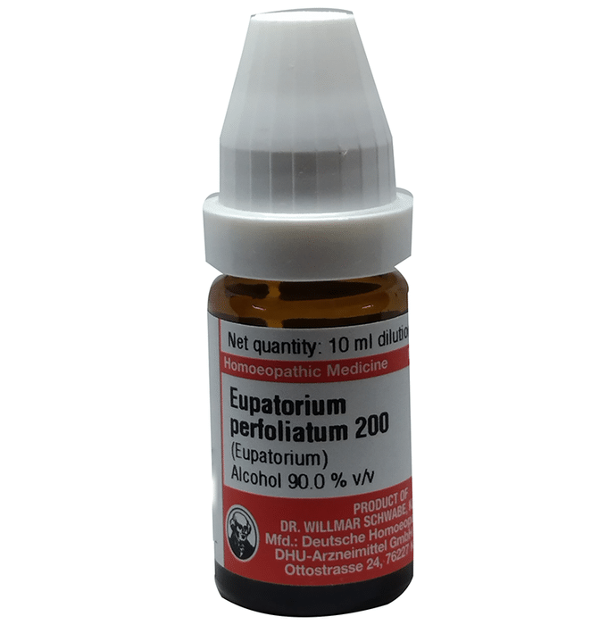 Dr Willmar Schwabe Germany Eupatorium Perfoliatum Dilution 200 Dr Willmar Schwabe Germany Eupatorium Perfoliatum Dilution 200 acts principally upon the gastro-hepatic organs and bronchial mucous membrane. It is a boon in miasmatic districts, along rivers, marshes, etc., and in all conditions where there is a great deal of bone-pain. It helps in cachexia (weakness and wasting of body due to chronic illness) from old chronic, bilious intermittents. It may help with lethargy and weak bones as well.