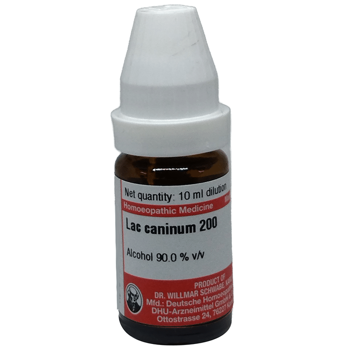 Dr Willmar Schwabe Germany Lac Caninum can help deal with swelling in the body. It can be effective in dealing with headaches and pain in the body. It can also provide relief from stiffness and soreness in the body. | Key Ingredients: Lac caninum | Key Benefits: This formulation can be effective in dealing with anxiety and stress It may provide relief from heaviness and pain in the eyes and ears It may help deal with coughing and sneezing This formulation can help combat soreness and pain in the throat | Directions For Use: Use as directed on the label or as advised by your healthcare provider. | Safety Information: Read the label carefully before use Do not exceed the recommended dosage Store in a cool and dry place away from direct sunlight Keep out of reach of children