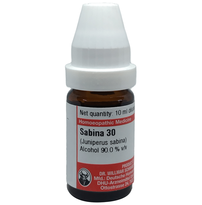 Dr Willmar Schwabe Germany Sabina (Juniperus Sabina) Dilution 30 Dr Willmar Schwabe Germany Sabina (Juniperus Sabina) Dilution is beneficial in the treatment of chronic ailments of women, arthritic pains, and violent pulsations all over the body. The formulation aims to provide relief in the condition of contractive pains in the abdomen and constipation with bleeding haemorrhoids.