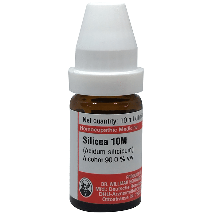 Dr Willmar Schwabe Germany Silicea Dilution 10M Dr Willmar Schwabe Germany Silicea Dilution Dr Willmar Schwabe Silicea Dilution, often known as pure flint, is a homoeopathic remedy. It is free of contaminants because it is made from all-natural ingredients. It aids children with slow bone development. It also helps with the production of pus, gland swelling, and sleepwalking.