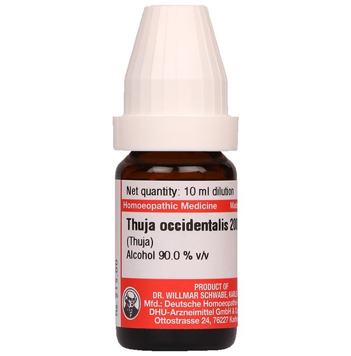 Dr Willmar Schwabe Germany Thuja Occidentalis Dilution 200 Dr Willmar Schwabe Germany Thuja Occidentalis Dilution 200 Thuja work for a wide variety of health conditions and it has been best known to treat skin infections and conditions like warts, dry skin, itching eruptions, fungal infection of nails and hemorrhoids. It is beneficial in the case of warts and even menstrual problems.
