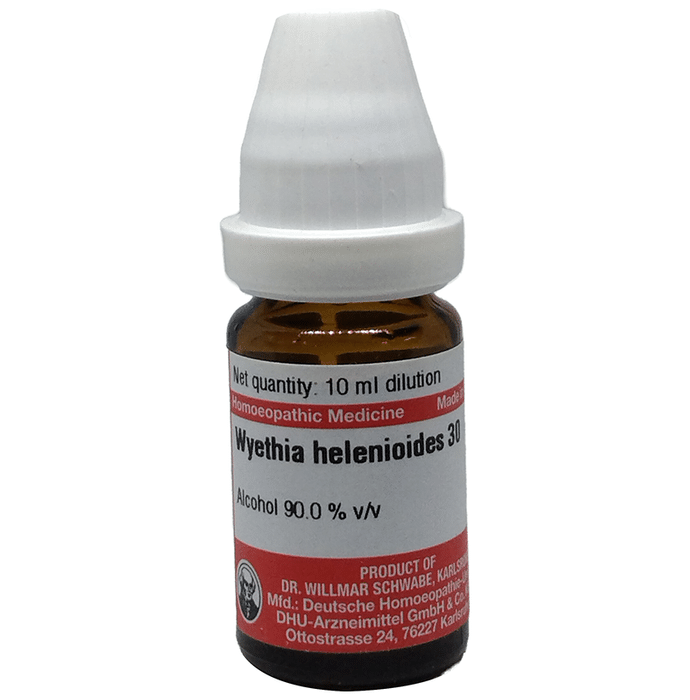 Dr Willmar Schwabe Germany Wyethia Helenioides Dilution 30 Dr Willmar Schwabe Germany Wyethia Helenioides can provide relief from the sore and infected throat. It can be effective in dealing with dry cough and related discomfort. It may help deal with the stiffness of the hand and wrist.