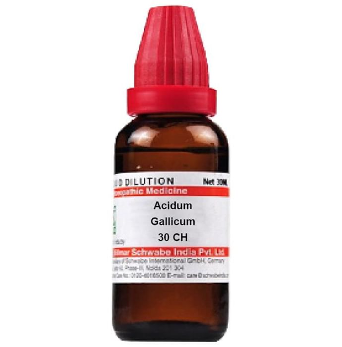 Dr Willmar Schwabe India Acidum Gallicum Dilution 30 CH Dr Willmar Schwabe India Acidum Gallicum Dilution is a wonderful remedy and is used in many types of conditions. It helps in increasing the appetite, toning the stomach and relieves flank pain in lower abdomen. The drug is very effective for a healthy urine formation. It is also useful for many types of respiratory, rectum, head and mind conditions.