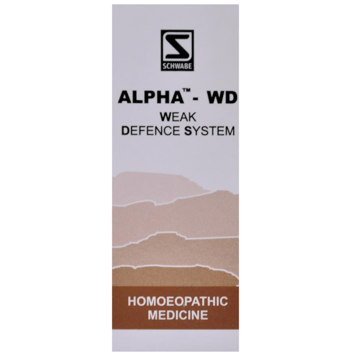 Dr Willmar Schwabe India Alpha - WD Drop ALPHA-WD Description The protective shield against day to day infections. Strengthens immune system to prevent recurrent respiratory infections. Promotes recovery. Ensures proper functioning of lymphatic system, which is intimately linked to immune defence mechanism. Has a detoxifying effect. Dosage: Unless otherwise prescribed by the physician, 10-20 drops hourly for a couple of days, and thereafter 3 times daily over an extended period of time. Children are to receive half the above dose. If complaints are not relieved, please consult a specialist. Note: The product contains alcohol. Dose may need appropriate alteration in the case of children, pregnant and lactating ladies and in certain serious liver and alcohol problems. Side effects: No side effects of Alpha - WD are known. Contra-indications: No contra-indications for the use of Alpha - WD are known. Interactions: No interactions between Alpha - WD and other products are known. Presentation: 30 ml glass bottle pack. Use under medical supervision.