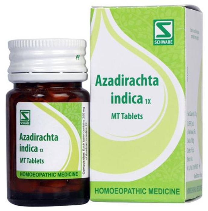 AZADIRACHTA INDICA 1X TABLETS DESCRIPTION For detoxification in diseases related to skin, respiratory system, gastro-intestinal system A clinically established homeopathically proved drug Clinically used for impurities of blood and recommended for skin diseases, boils, ulcers, eczema, scabies, pityriasis Useful in histamine induced broncho-spasm Reported to possess anti-cancer, anti-viral and anti-bacterial properties. Presentation: Bottle of 20gms. Dosage: Unless otherwise prescribed by the physician Adults: 1-2 tablets twice daily. Children: 1 tablet twice daily and when symptoms improve 1 tablet a day. If complaints are not relieved, consult a specialist. Side effects: No side effects of Azadirachta indica 1X are known. Contraindications: No contra-indications for the use of Azadirachta indica 1X are known. Interactions: No interactions between Azadirachta indica 1X and other products are known. Use under medical supervision.