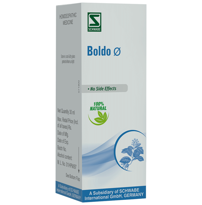 Dr Willmar Schwabe India Boldo Mother Tincture Q Dr Willmar Schwabe India Boldo Mother Tincture is a homeopathic medicine that is very effective in treating digestive disorders and liver problems. The medicine possesses diuretic and stimulant properties due to the volatile oil. It is indicated for painful hepatic disease with congestion and inflammation. Stones in gall bladder, burning and heaviness in the liver region is also treated using this medicine.