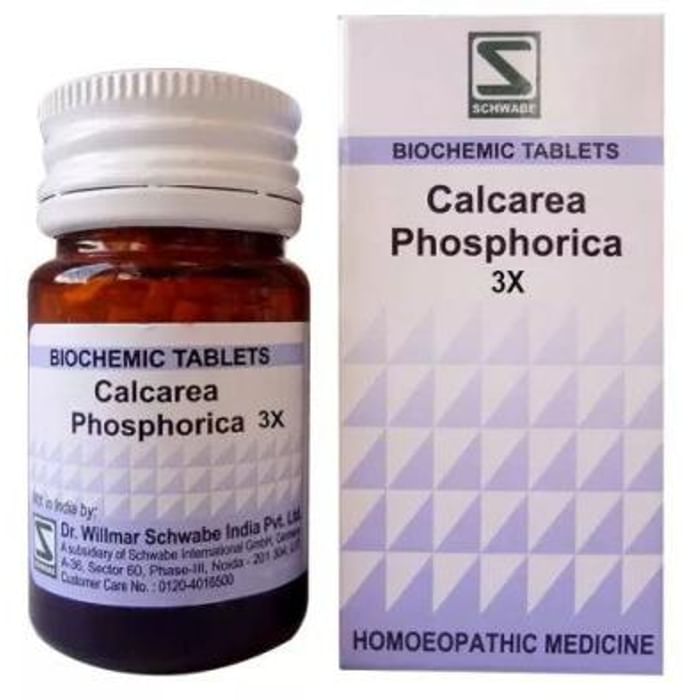 Dr Willmar Schwabe India Calcarea Phosphorica Biochemic Tablet 3X Dr Willmar Schwabe India Calcarea Phosphorica Biochemic Tablet is a wonderful medicine for the treatment of many respiratory diseases including chest congestion. It helps against bone diseases, dentition and gland inflammation. It helps in joining fractured bones faster and anaemia due to serious diseases. It also helps against weakness and chronic lung infections.