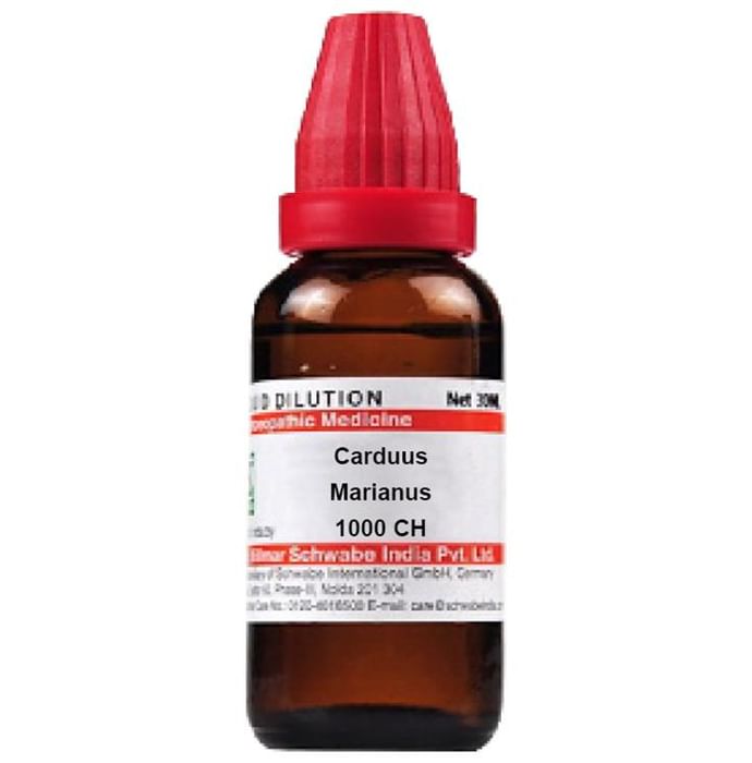 Dr Willmar Schwabe India Carduus Marianus Dilution 1000 CH Dr Willmar Schwabe India Carduus Marianus Dilution is a homoeopathic remedy that is useful for liver damage caused due to jaundice or overconsumption of alcohol. It can also be used as anti-depressant and breast milk enhancer.Formulated with Carduus Marainus it helps the body synthesize a healthy flow of bile and reduces the incidence of an individually developing gall stone colic.