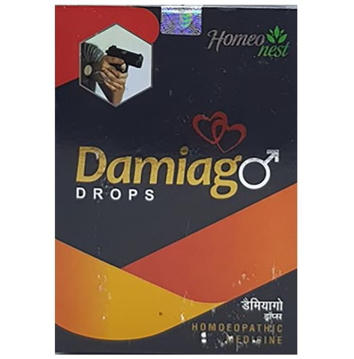 Homeo Nest Damiago Drop is an effective remedy for a number of issues mostly related to psychological disorders such as anxiety and depression and corrects low levels of energy in the body. Its main use also includes treatment of sexual dysfunction in male and promotes libido. | Key Ingredients: Agnus Castus Cinchona Officinalis Conium Mculatum Daiana Sepia | Key Benefits: Its primary use includes treatment of a psychological disorder such as depression and anxiety Restores energy levels in the body It may be beneficial in treating sexual disorders in men such as premature ejaculation and erectile dysfunction It may enhance sex drive and improve libido | Directions For Use: 15 drops should be diluted with water and taken 2-3 times a day before meals or as prescribed by the physician. | Safety Information: Read the label carefully Store in a cool and dry place Keep out of the reach of children