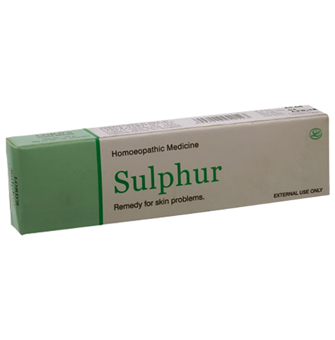 Lord's Sulphur Ointment is a homeopathy solution. It is made from sulphur springs suitable for skin ailments such as pain, redness, burning, and inflammation. It has antibacterial properties in it, which prevent the bacterial formation and may protect your skin from acne and pimple formation. | Key Ingredients: Sulphur | Key Benefits: It helps to reduce the inflammation of the skin It may address eczema and other minor skin ailments It provides relief from the conditions of dermatitis It also provides relief in the case of dryness of the skin with the formation of scales It helps to relieve skin irritation and improves epidermal barrier function | Directions For Use: Apply twice daily to the affected area Or as directed by your physician | Safety Information: Read the label carefully before use Store in a cool and dry place, away from sunlight Keep out of reach of children