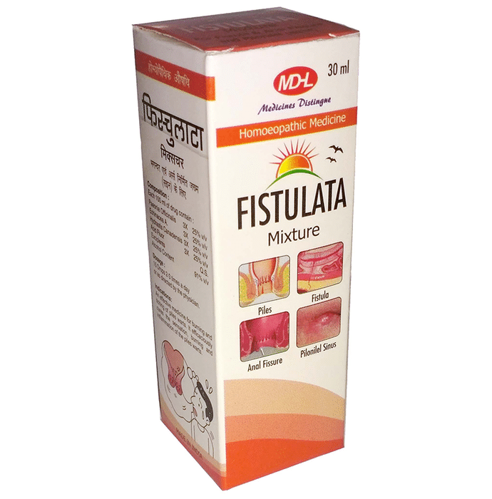 MD Homoeo Fistulata Mixture is a homeoepathic medicine which contains paeonia officinais to help in managing several health complications including varicose veins, piles, ulcers, weakness and cramps | Key Ingredients: Paeonia offcinais Echinacea A Hydrastis Can Acid flour | Key Benefits: It helps in dealing with varicose veins and piles The presence of echinacea A helps shorten the duration of the common cold and flu and reduces symptoms such as sore throat, cough and fever It may help in managing redness of the anal opening and flatulence with an offensive odour | Directions for Use: As directed by the physician | Safety Information: Read the label carefully before use Store in a cool and dry place, away from sunlight Keep out of reach of children Don’t exceed the recommended dosage
