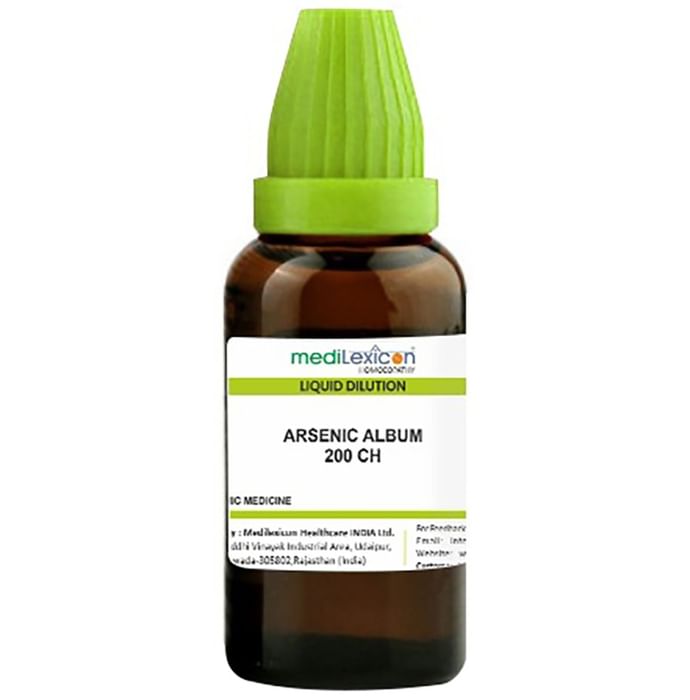 Medilexicon Arsenic Album Dilution 200 CH Medilexicon Arsenic Album Dilution is a homoeopathic medicine that is also known to help in the treatment of chronic as well as recurrent problems. Often recommended for use in patients suffering from anxiety and stress, this medicine is also known to be highly effective in improving your overall health post an illness. In some cases, it is also given to treat headaches and fever, which are some of the common symptoms of many health problems. It is primarily used for the treatment of acidity, indigestion, and other stomach disorders caused due to exposure to cold food items or drinks. It also helps treat respiratory problems which include, including leading to breathing difficulties. It may also help to reduce fever and weakness following an infection. Taking this medicine may also help you boost your immunity against infections.
