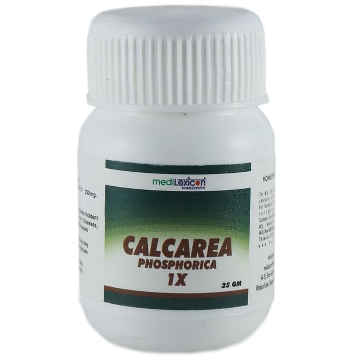 Medilexicon Calcarea Phosphorica Biochemic Tablet 1X Medilexicon Calcarea Phosphorica Biochemic Tablet is a homoeopathic medicine prescribed as a nutrient supplement for the treatment of anaemia, cold, stunted growth, and soft and thin cranial bones. It also helps in relieving the discomfort caused by teething. It can be safely be given to infants and toddlers because of minimal side effects. Enriched with the Calcium and Phosphorus, it is a useful supplement for people of all ages suffering from problems related to the deficiency of these minerals.