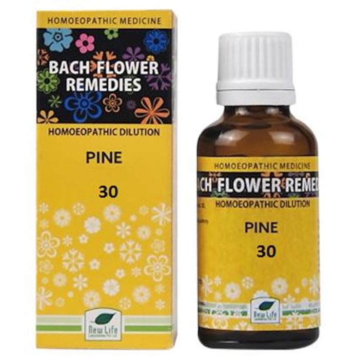 New Life Bach Flower Pine 30 New Life Bach Flower Pine 30 is an ideal remedy for psychological disorders such as feeling of guilt, self-pity, self-condemnation and blaming themselves for situations that were not their responsibility. This mix is created for such situations of crisis, and when these negative feelings begin to subside, a feeling of confidence and fulfilment takes over. The mix helps to reduce the feeling of self-guilt and self-remorse. Pine essence helps break this destructive cycle.