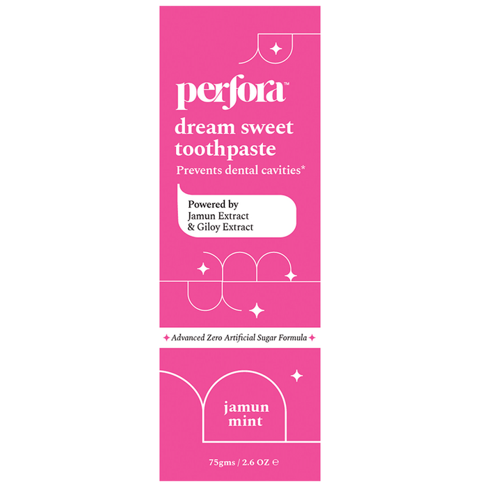 Perfora Dream Sweet Toothpaste Jamun Mint Perfora Dream Sweet Toothpaste Jamun Mint prepared with the goodness of jamun and mint, Perfora Dream Sweet Toothpaste is meant to provide holistic oral care. It is made of natural ingredients and is free from harmful chemicals like titanium dioxide and sodium lauryl sulphate. It fights cavities and takes care of damaged gum.